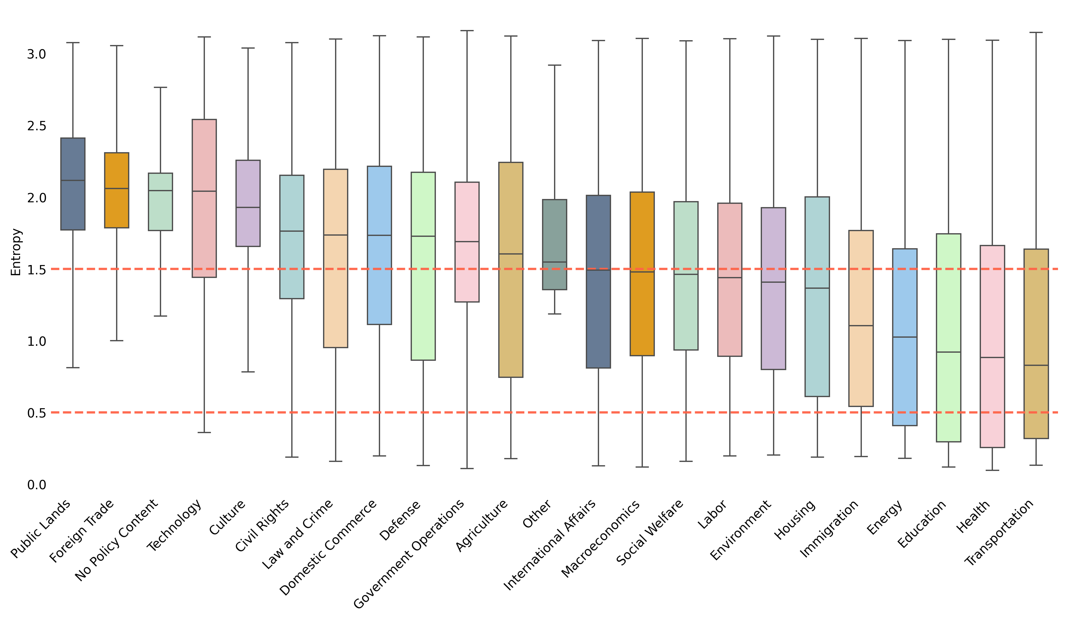 A central highlight of the presentation was a comparative plot showing entropy threshold values across all countries and major policy topics. The figure illustrates how uncertainty varies across labels and national contexts, and how entropy-based thresholds can be used to distinguish higher-confidence from more uncertain benchmark cases. This is an important component of the project’s benchmarking framework, as it helps make the quality and comparability of the labelled data more transparent.